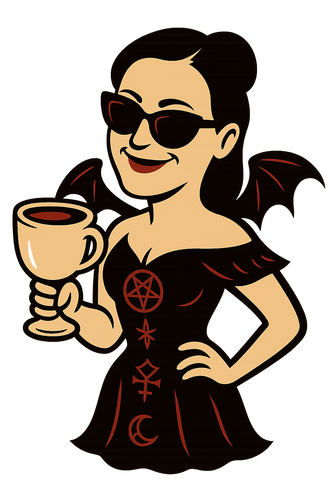 “I left Adam the moment he tried to tell me how to take my coffee. Now I sip in peace... Black, bitter, and beautifully defiant... Wrapped in a shirt as dark as my sense of humor. Paradise lost... caffeine gained.”